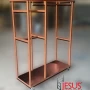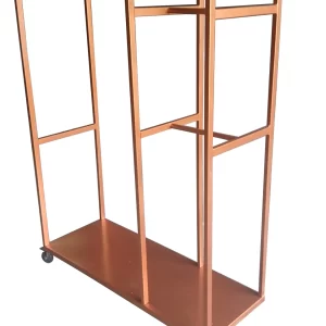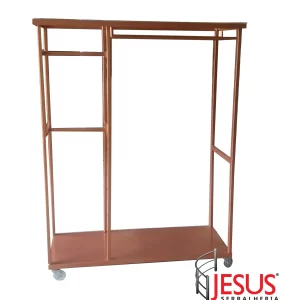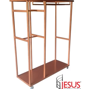 Com rodas que possibilitam a mobilidade, o carrinho arara têxtil é uma solução versátil para a exposição temporária ou transporte de roupas, facilitando a organização do espaço e maximizando a visibilidade dos produtos.