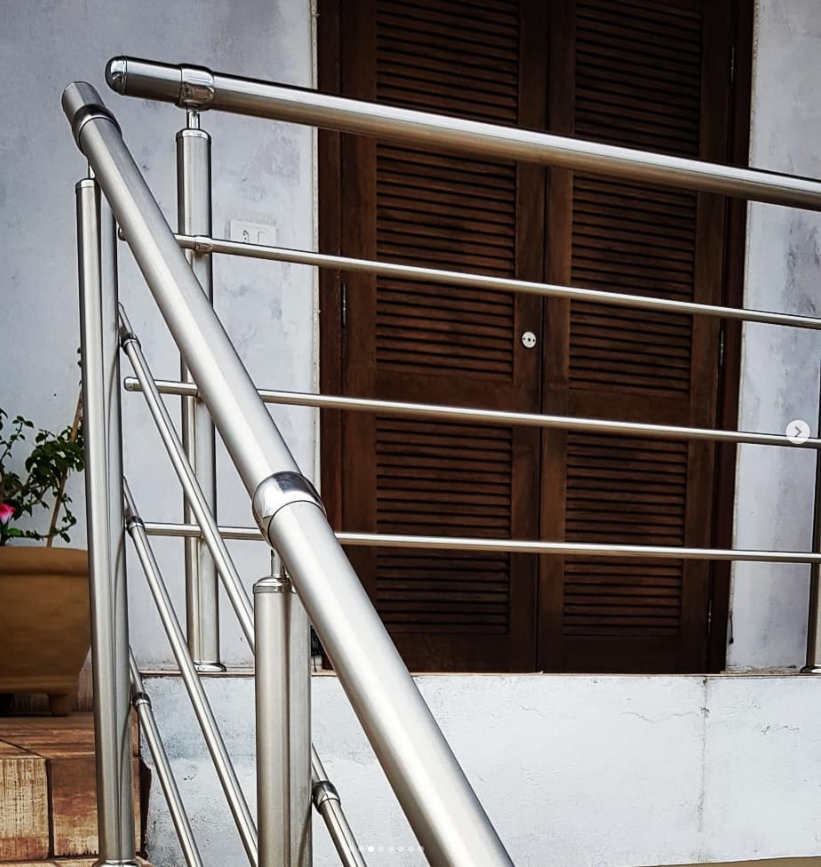 O corrimão de inox é conhecido por sua durabilidade, resistência à corrosão e baixa manutenção. Sua aparência moderna e elegante o torna uma escolha popular em ambientes residenciais e comerciais contemporâneos.